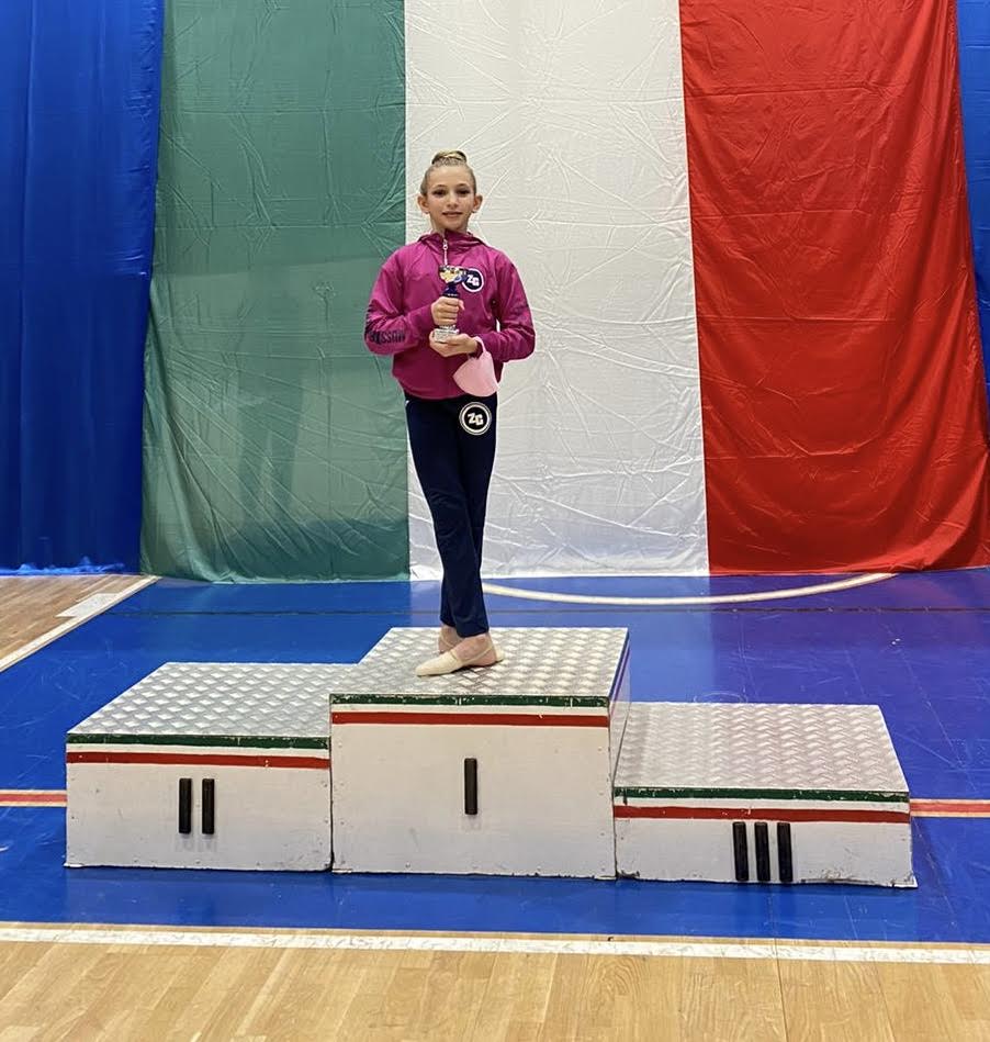 11,050 è il punteggio che realizza Pistamiglio al corpo libero, punteggio più alto di tutta la categoria, a cui segue un buon 10,300 per l’esercizio al cerchio, che sancisce l’indiscussa vittoria della giovane chierese.