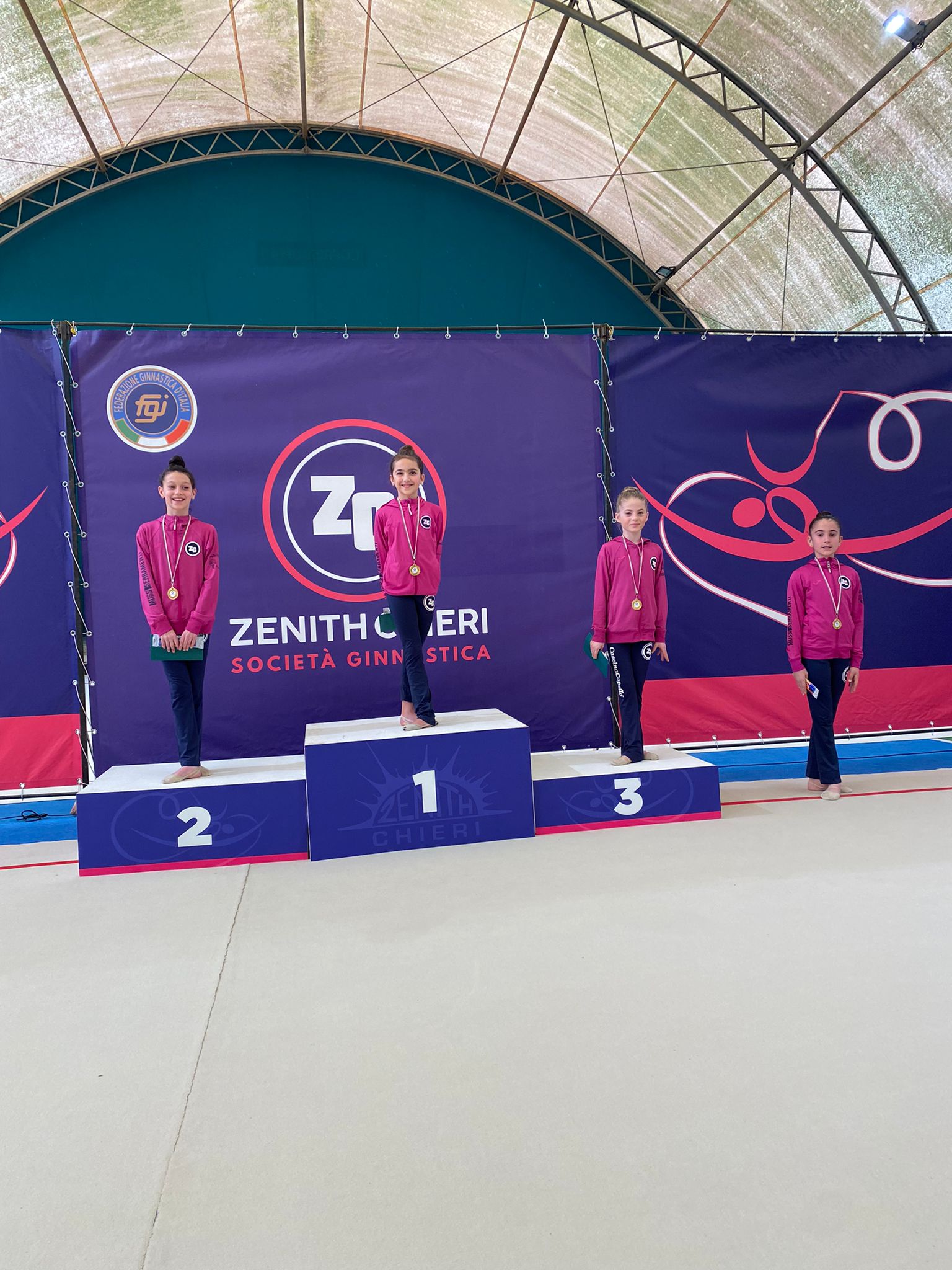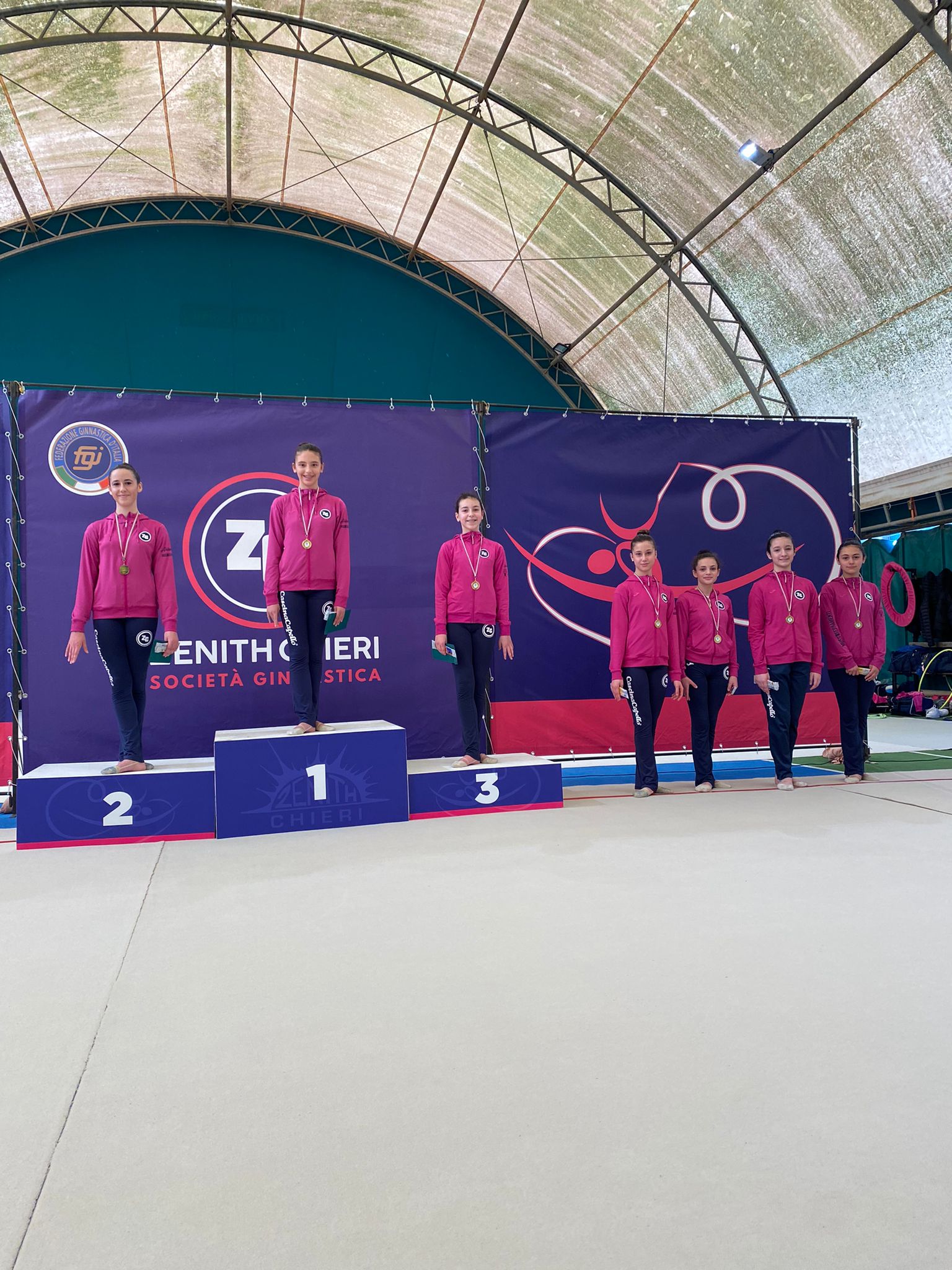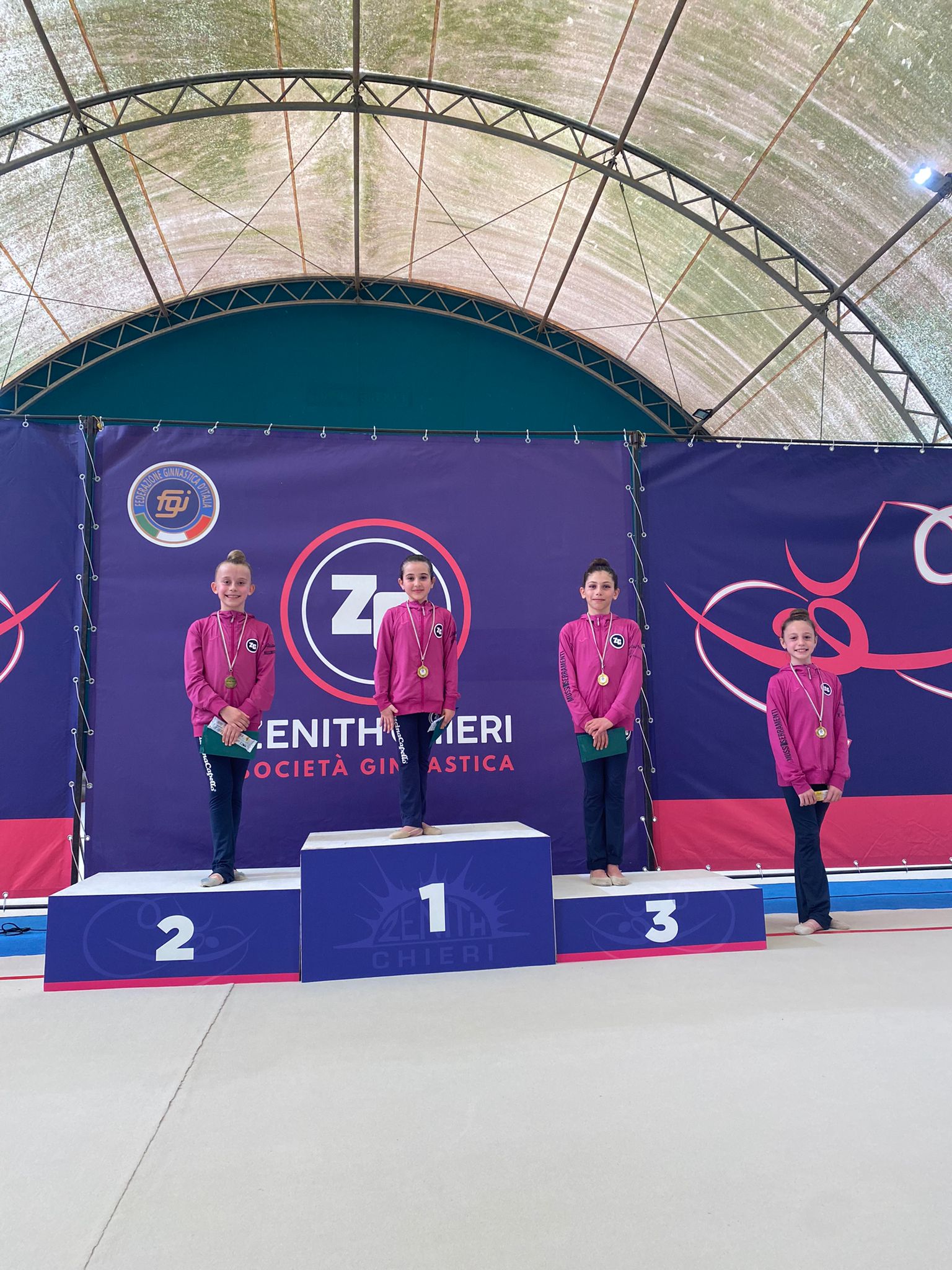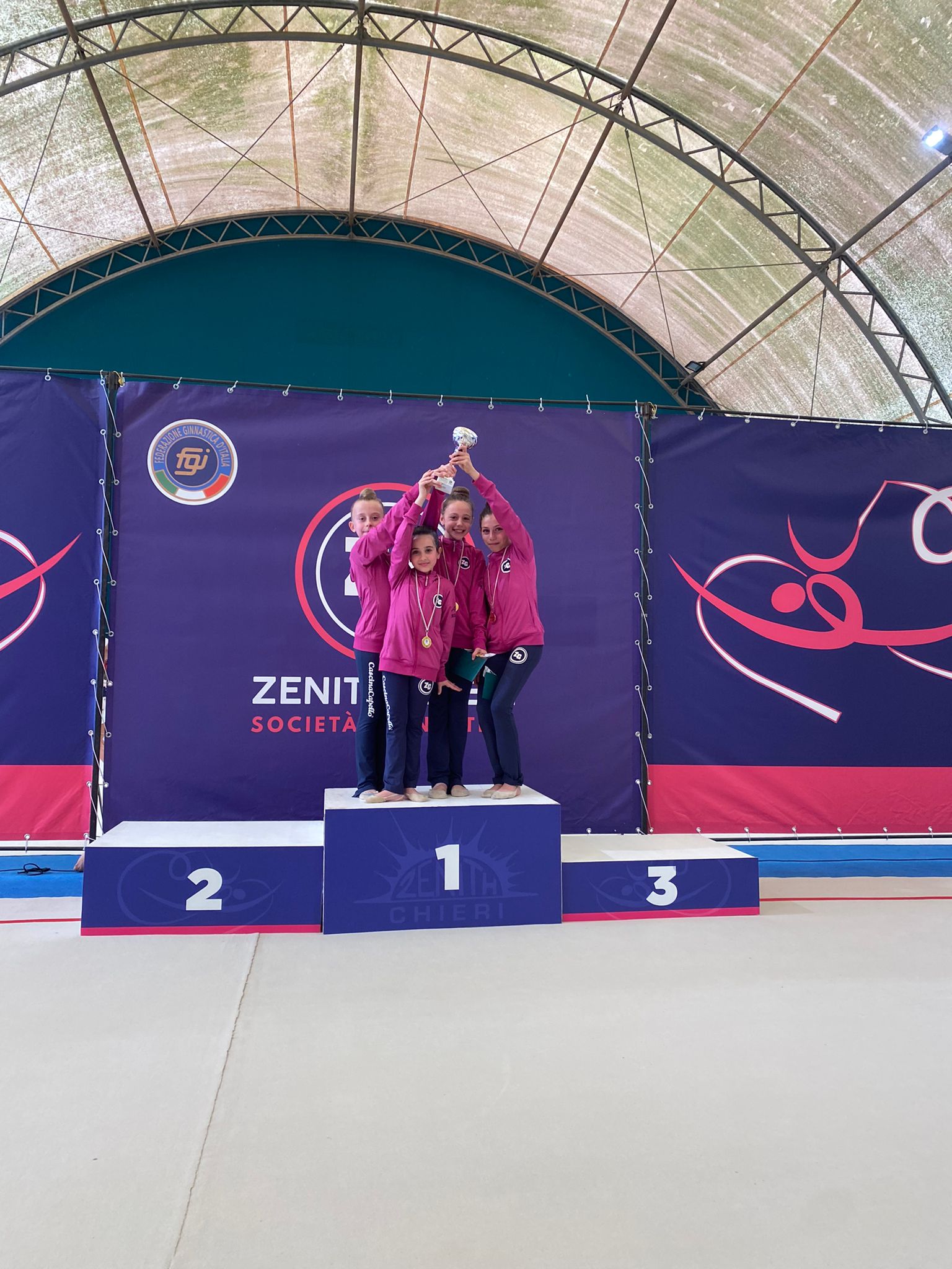 Per il livello A, categoria Allieve 1, è medaglia d’oro per la brillante Squadra 1: Giulia Cuccolo, Gaia Francone, Martina Piovano, Linda Fantoni e Gaia Perlo.