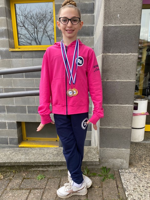 È due volte medaglia d’argento Martina Quaranta, Allieve 2, in gara con Corpo Libero e Nastro. Due medaglie anche per Anita Portoghese, d’oro alla Palla e bronzo con le Clavette.