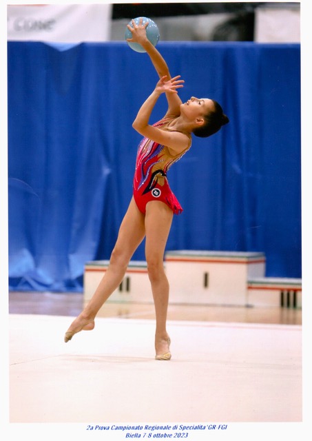 Noemi Sgueglia, impegnata nei difficile Campionato Gold Individuale nella categoria Junior 1, dopo una prima prova disputata non al massimo delle sue potenzialità, si presenta davanti alla giuria con maggiore consapevolezza dimostrando un buon miglioramento tecnico. Inizia bene la gara con un buon esercizio al nastro, prosegue poi con quello al cerchio e infine palla e clavette. Alcune sbavature, valutate in maniera molto severa dalla giuria, non lasciano spiragli di ribaltoni nella classifica definita in prima prova. Noemi si ferma in settima posizione anche a Biella. Il rammarico per l’esito della prova lascia immediatamente il posto alla festa per la partecipazione alla successiva fase di Zona Tecnica, occasione importante per la nostra Noemi. Sgueglia, col suo staff al seguito, sarà impegnata in gara dunque sabato 21 ottobre in provincia di Padova.