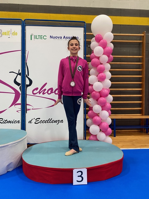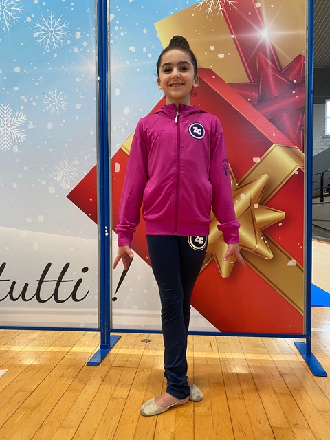Irene, classe 2010, grazie ad una gara ottimamente gestita dal punto di vista mentale, porta a termine una buona prova alla palla che le vale il secondo punteggio di specialità e con l’esercizio alle clavette, nonostante un fallo tecnico, riesce comunque ad imporsi su tutte le avversarie aggiudicandosi il primo posto di specialità.