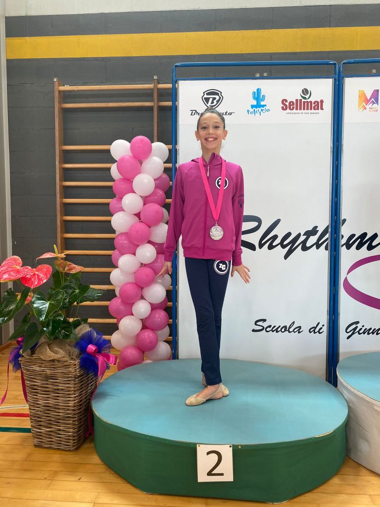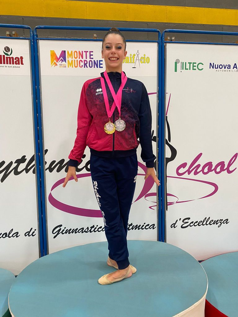 Una doppietta di medaglie da incorniciare: Noemi vince la gara alla palla ed è medaglia d’argento alle clavette.