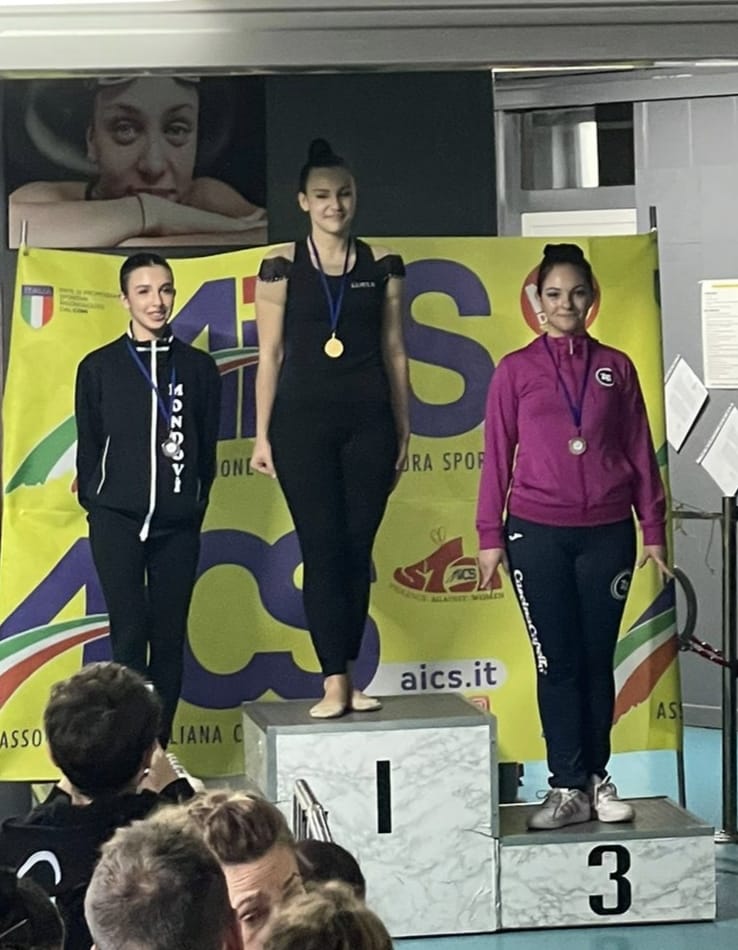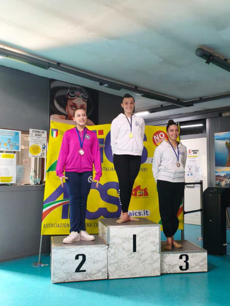 Gaia Spinelli, classe 2012, è la stella della giornata. Assente a causa di un piccolo infortunio alla prima prova di febbraio, si fa trovare pronta per questo secondo appuntamento, aggiudicandosi una meritata vittoria con l’attrezzo palla nella categoria Junior, livello Basic, ed un altrettanto splendido secondo posto con l’attrezzo cerchio. Nella stessa categoria, la sua compagna Giada Valpreda conquista la medaglia di bronzo alla palla ed il nono posto con il cerchio, macchiato da un errore in apertura di esercizio.