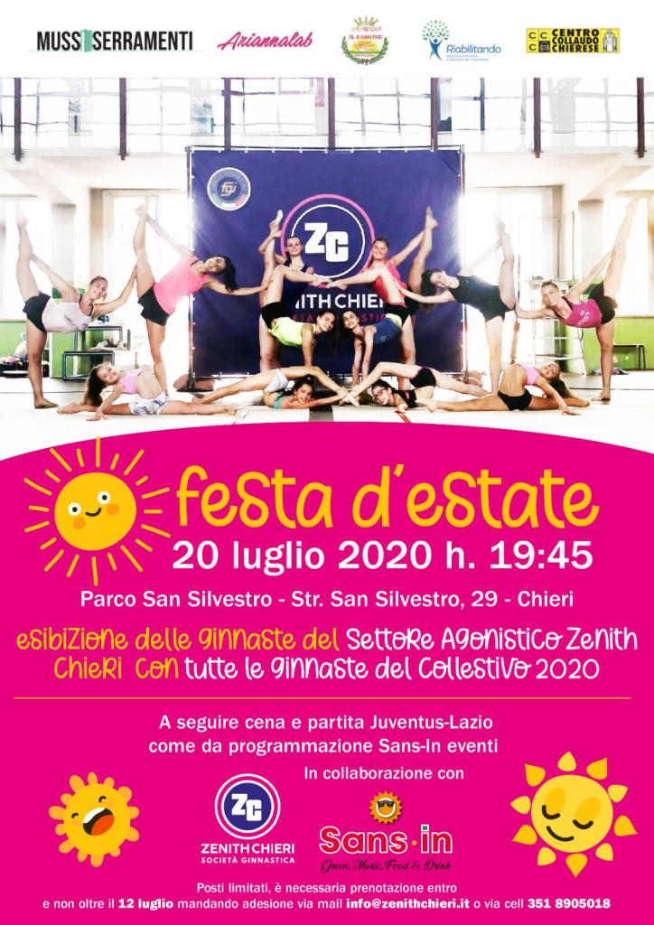 Lunedì 20 luglio, in collaborazione con Sans-In, una serata per tutti Noi, all’aria aperta, un momento di festa dove le protagoniste, ancora una volta, saranno le Nostre Zenith-ginnaste!