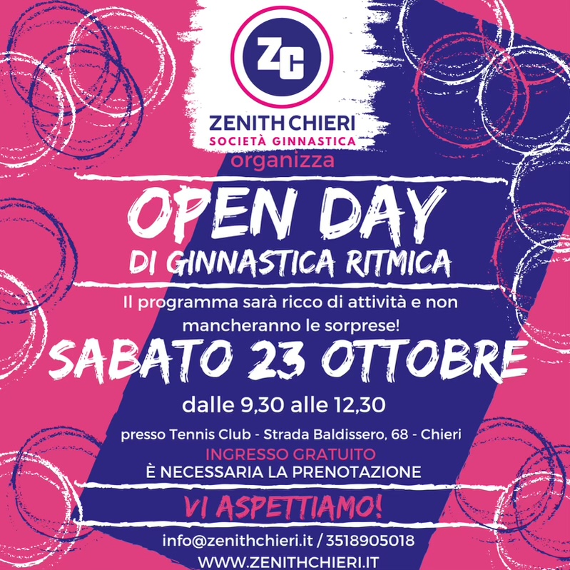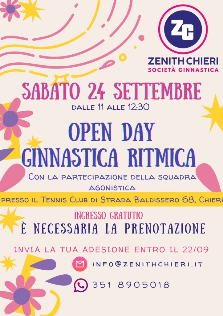 Sabato 23 ottobre ci sarà l’OPEN DAY di Ginnastica Ritmica Zenith Chieri!