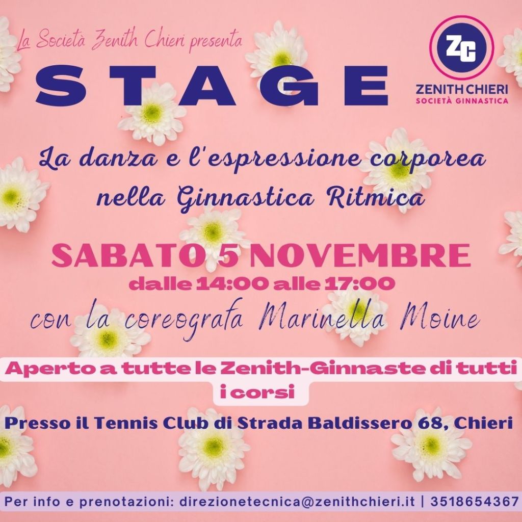– Stage di Danza applicata alla Ginnastica Ritmica con la coreografa dello Staff Zenith Chieri